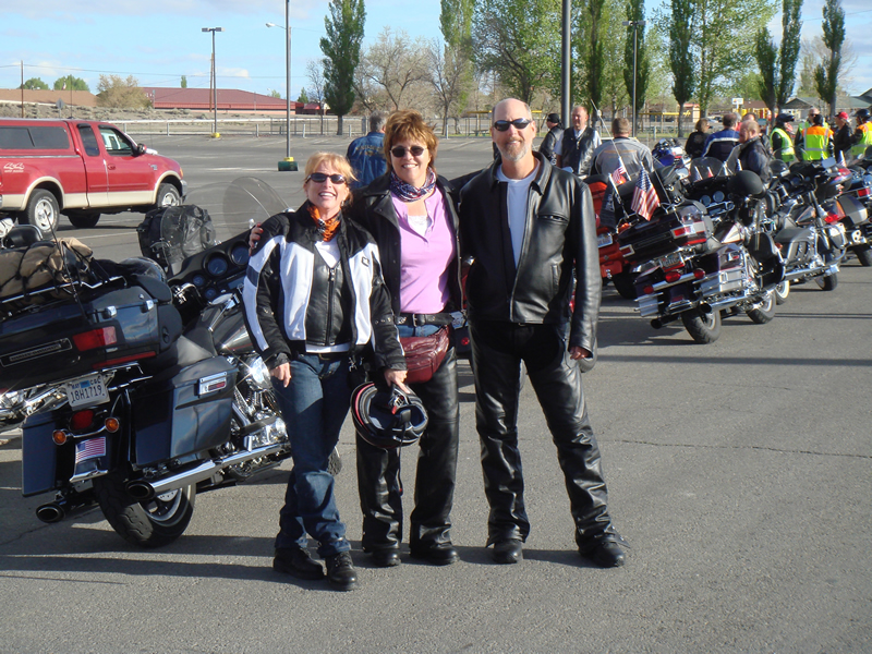 We took off with 22 bikes this time. The fuel stop and lunch stop was at Wendover at the border. Some of us took off our helmets as we headed into Utah. All was doing great until we got to mile 78. My bike popped a couple of times and just quit. All I could do was pull over on the side. Joni and Mary Beth turned around to see what was up. The merchandise truck stopped, but could not help. My new battery was all the way dead. Yes, again. It was starting to get warm and bulge out, just like the last one. Only this time it would not even light up my test light. Cynthia called me from the fuel stop about 21 miles down the road. I asked them to find me a battery. Randy rode 10 miles south to Wal-Mart. He called me to see what kind of a battery I wanted. Any car battery will do, I told him. He also got me some wire and returned with it. I put the big battery on the train horns and wired it in. I also disconnected the charging wire from the voltage regulator that was not regulating very well. The headlight was burned out, as were all my tail and brake lights. I cranked over the engine and it had no fire. I checked the plug wires and no spark. As soon as I pulled off my points cover, I saw the electronic ignition fried too. Randy was going back to the truck stop to get Cynthia and find a truck for my bike. Drew and Cliff were ready to ride into Salt Lake City to find a new ignition. I said to wait and I called the Harley Shop. They gave me a phone number for a V-twin performance shop. I called and they had a complete kit, including a coil. I paid for it over the phone and got directions. I then called Cynthia and asked them to go the 33 miles more into Salt Lake City and get me the new parts. Randy just got back to her then and they got my stuff.