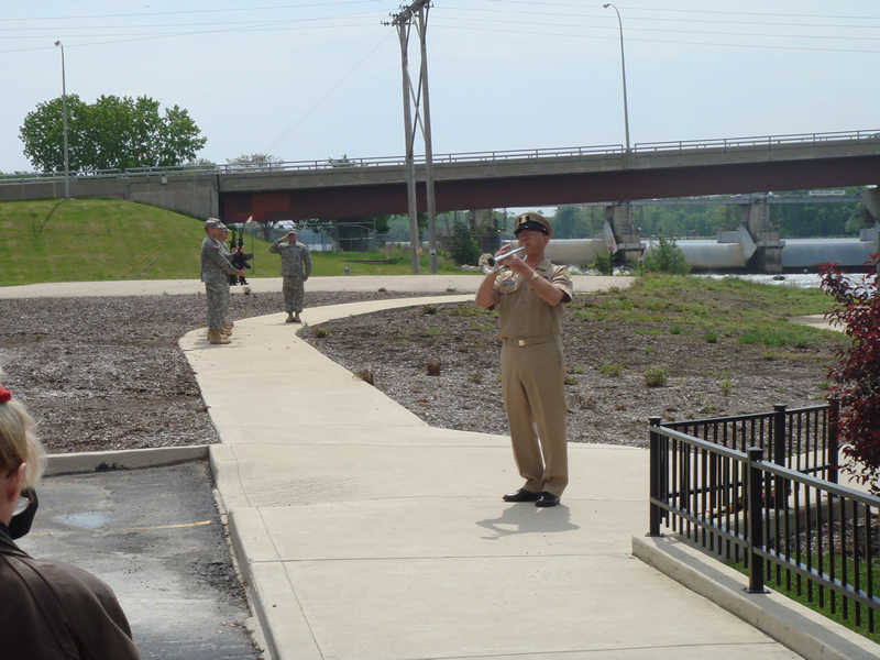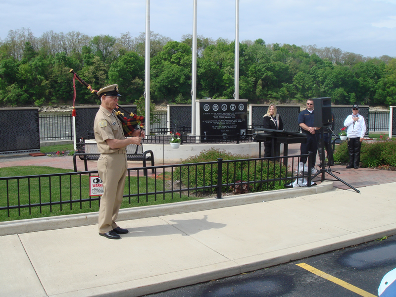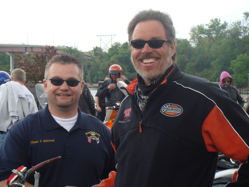 Our next stop was a very cool police and fire truck escort, through town, to the Danny Bruce Memorial, down by the waterfront. 21-gun salute, taps, and a bagpipe were played. Headdog, Steve Moore, gives away a lot of certificates of appreciation at all of our stops to a lot of people who have rolls in our special treatment. It’s a pretty cool way to say thanks to people.