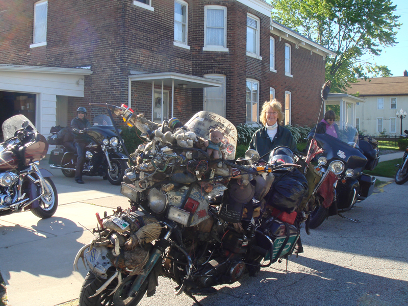 Our next stop was the St. Joseph Club for a great dinner. A couple of days ago Headdog told me that Jan had donated her two Bed and Breakfast houses to our NVAR riders. Steve told me he would like to give one to my friends and me as a way to say thanks for all I do, and have done for this run. Feallock House is the name of it, and Jan is the very gracious hostess. Joni &I have one room, Gary & Nancy, Drew & Cliff, Cynthia & Randy, and Les Stephens from Salem Oregon, all got rooms, and John from Iowa, a fellow shovelhead rider, got a room too. Jan made sure we all know how everything works. We are using all three sets of washers and dryers as I write of this day’s adventures. Four of our bikes were able to park inside her garage. This is the first time that I have stayed at a B&B. We might have to pursue this at another time. Jan said no breakfast as she is going to join us for the breakfast provided by the VFW post 2536.