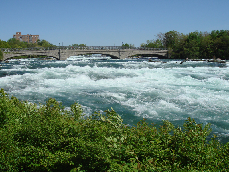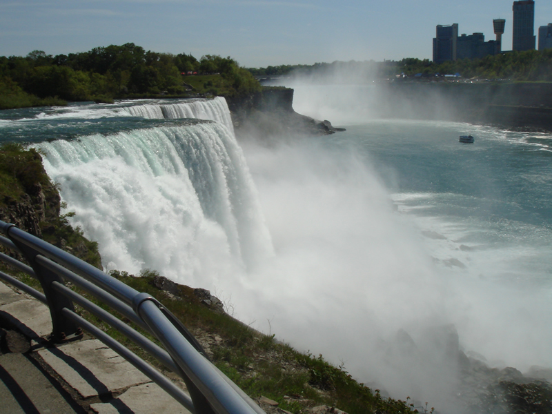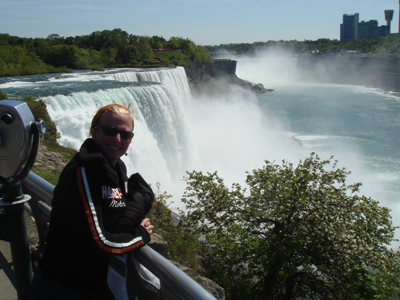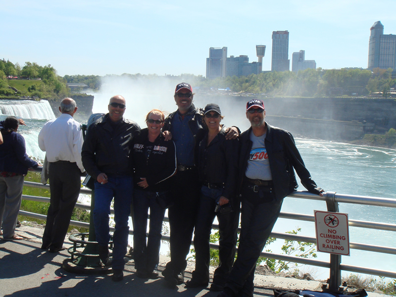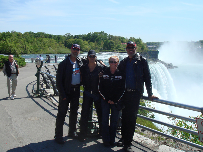 A sandwich stop, and a few more gas stops, and we finally got to Niagara Falls. The parking for the State Park was $10.00. We figured that we have had our wallets open enough to ride on the toll roads that we aren’t paying to PARK! We rode up the street a bit and parked by the sidewalk. Drew found out from the guys who were trying to get us to pull into their lot, and have us PAY, that we would get tickets for parking there. Well the stupid sign says, ‘NO STANDING from here to the corner’. We figured we were cool, ‘cause we weren’t going to stand, we were just going to park! Well that isn’t what the New York sign means! So we moved our bikes and put two bikes on each side of the driveway of the guy trying to get us to PAY to park in his lot! He said we were going to get tickets there too. We told him to watch our bikes, ‘cause we aren’t moving them again, ticket, or no ticket! Off to the falls we went. We took a few pictures and had someone else take a picture of all of us together. The falls look pretty cool. It just looks like it is possible to go over them, if one is well enough equipped. No, I won’t be trying it anytime soon. What a spectacular sight, the cascading water rolling over the rock shelves under the grand arched bridge, just upstream from it’s destiny of the “Edge of the World”. And to the final destination, carrying with it over 500,000 gallons of water per second, just free falling to unknown and unseen depths beyond our comprehension. Ok, ok, I know. That sounds a little deep coming from a rat bike rider! Back to real life.