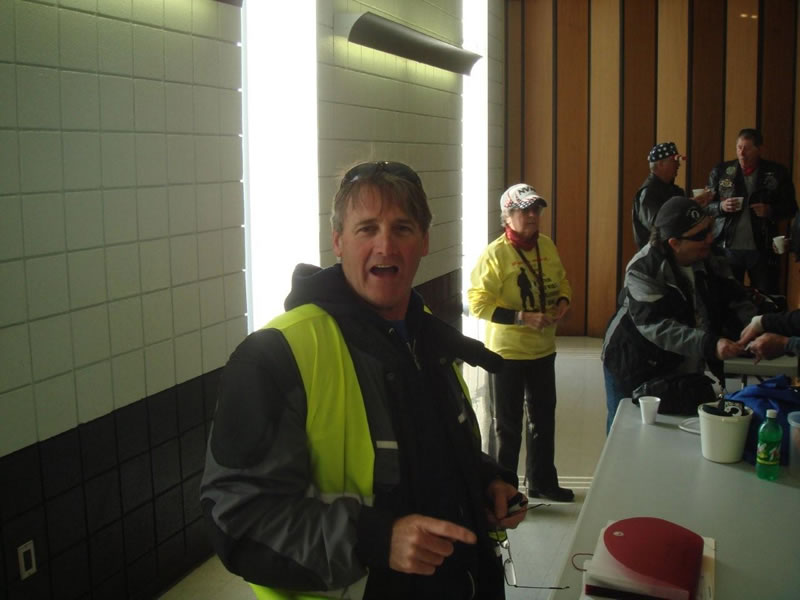 We got up at 5:40 again and we had a light breakfast at the motel. We then rode over to a fire hall for our morning meeting and more coffee and juice. Mike and his brother Tom were going to stay there for an extra day and let Mike's back have a break from riding. Jeff, from Cottage Grove, Oregon (45 minutes north of Roseburg) rode a little south of Des Moines last night and picked up his daughter, Tiffany, who is going to school in Iowa. When they got back I met her in the hallway. I shook her hand and they were freezing cold, probably the rest of her was too. I think that it's a great thing when family can get together, especially when they live so far apart. I think that Mike & Tom are going to take her back home today.