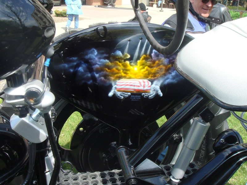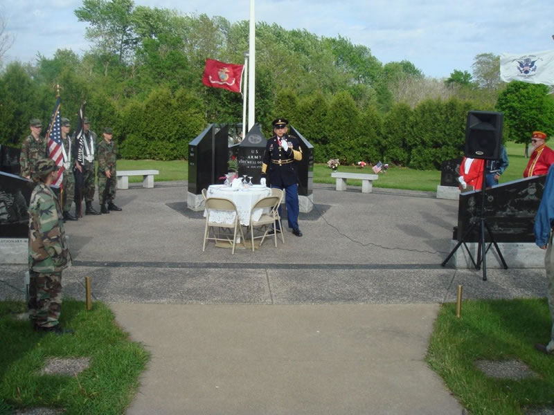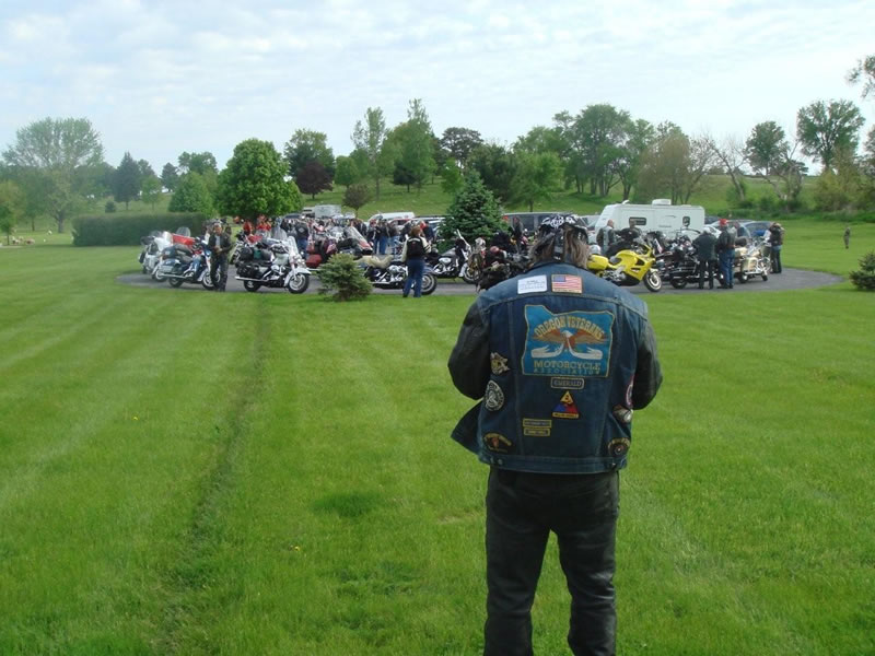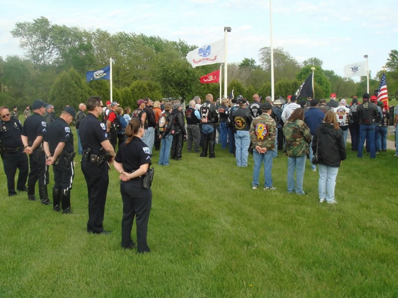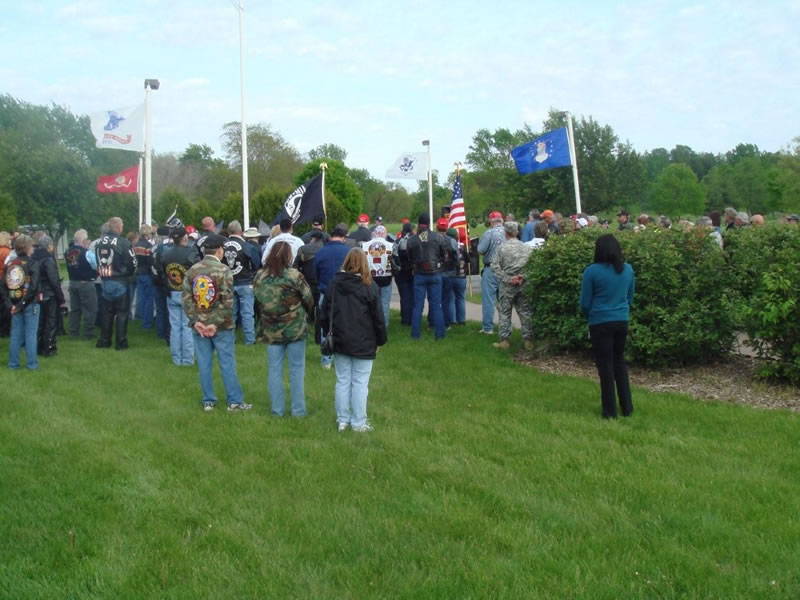 The police escort took us through town with all the intersections taken care of by the police dept. into the Davenport All Veterans Memorial in the middle of a beautiful cemetery. I saw a lot of friends from past rides including Pam from the local HOG group. Frank and Mike are a couple of Marines who rode with us a couple of years ago. They were part of an awesome ceremony that was our pleasure to watch again. Everyone did an excellent job and Steve was presented a rose in Michelle's honor from the main gal doing the ceremony.