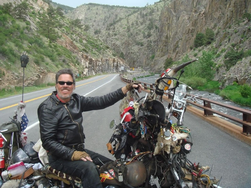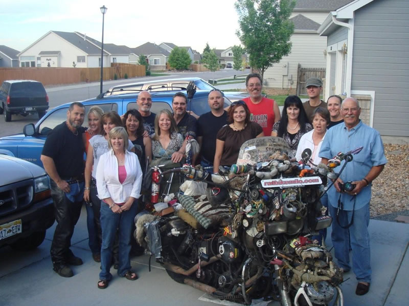 The sun came in the window shortly after 5:00 am this morning waking me up at Noel & Yvette's house in Johnstown, Colorado. They have an awesome house with a beautiful view of the Rockies from the east. After Noel fixed pancakes for breakfast, I proceeded to jack up the bike (with Noel's jack) and take the back wheel off. Next came the front wheel and we put them in Noel's truck and headed off to town. Noel said that it seemed like we were forgetting something, and I said that we're good. A couple of blocks later I said, "I know we forgot...The two new tires!" We went back to the house laughing all the way to pick up the tires and then we headed back to Thunder Mountain Harley-Davidson. I have tire irons with me but since I started running mag wheels I find it a lot easier to have a tire machine do the work and spin balance is the way to go. Jake said he would have them done in a couple of hours so we went back to the house and I got the rest of the stuff ready.