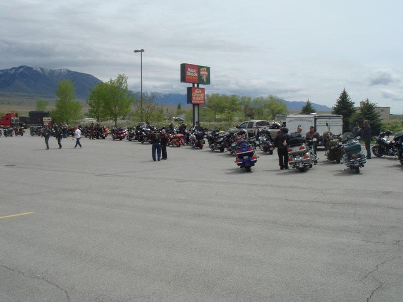 On the road again going through town at about 5:15 and traffic was even more of a "don't get in my way, I'm going home", mentality of the big city drivers. But they didn't take too many blocks to realize that they didn’t want to be in between 50 bikes and they eventually moved over. Another 70 miles or so to our next stop in the state of Wyoming. State Troopers were waiting for us on the interstate and Evanston Police and Sheriff's were blocking off the intersections all through town. We rode to the VFW where they had a very good dinner and desert's waiting for us. It was a very good reception as there were a lot of town folks waiting for our arrival. After dinner Steve gave out a few more certificates of appreciation for everyone who helped coordinate the event. Then it was off to the motel where we found out that it is a newly opened Hampton Inn that just opened a week ago. A lot of the rooms were not even used yet.