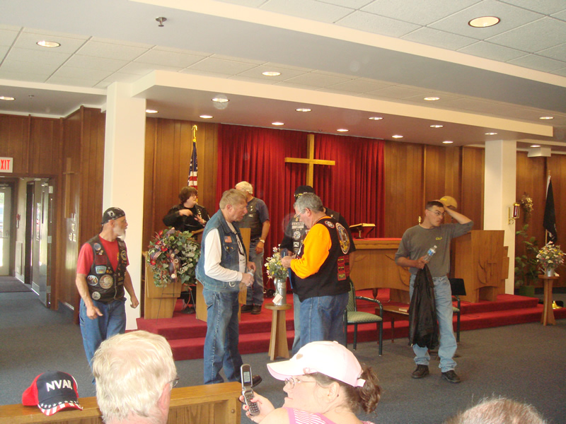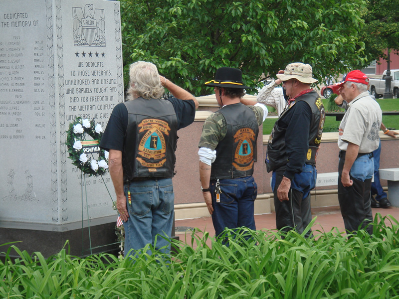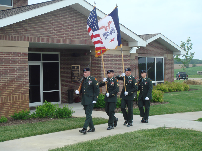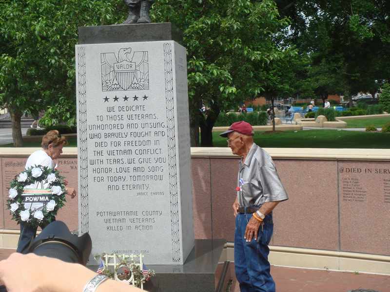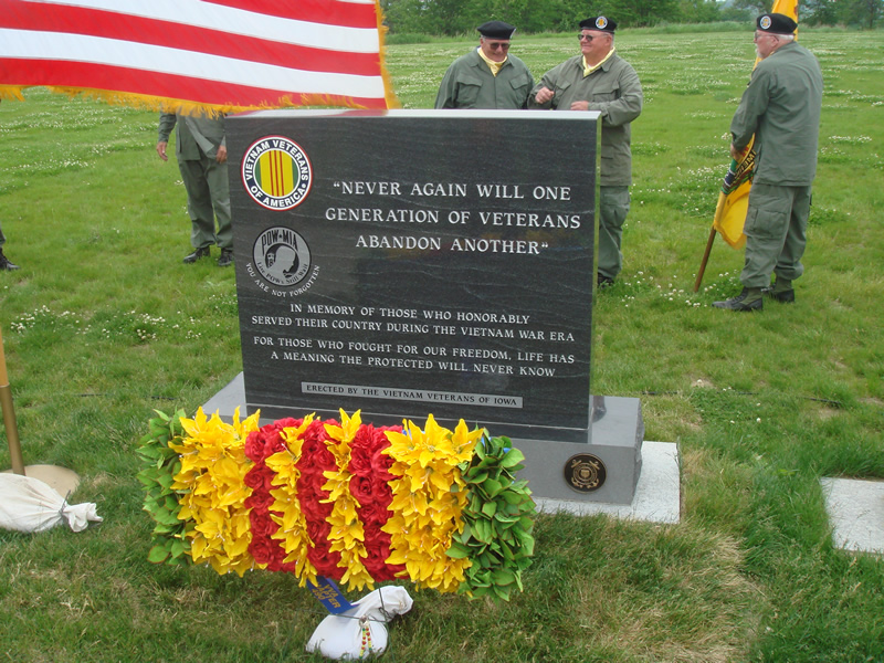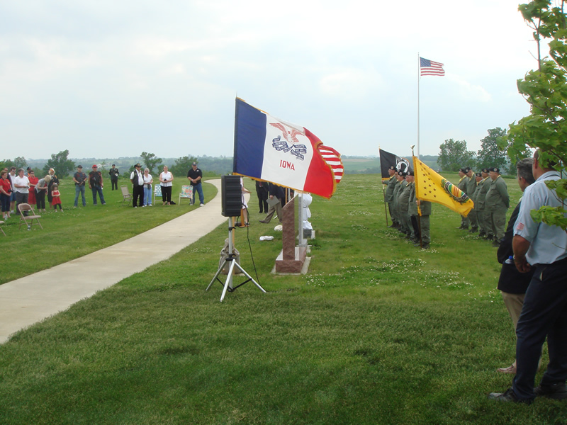 We were off on the road again to the Iowa Veterans Cemetery for a couple of ceremonies. One of them was the unveiling and dedication of a new Vietnam Veterans Memorial Stone which is very cool. The main inscription says, "NEVER AGAIN WILL ONE GENERATION OF VETERANS ABANDON ANOTHER". We all got saddled up and went another 17 miles into town with a police escort to the Des Moines Paralyzed Veterans Association State Headquarters for dinner. We had a very good reception by all those involved in making us feel at home. Terry and I left to get to the motel before the big rush to check in. Boy, are we ever glad we did. She had us over booked and 4 people did not get rooms. There were some not so happy campers. There was another motel right next door, which came in handy. We had to plead our case to get a room with 2 beds. Mission accomplished and we got settled in and we hit the pool and the hot tub. Time for bed for another fun filled day tomorrow.