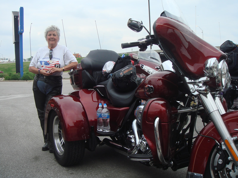It was then that Jennie arrived on the back of Keith's bike and we all had a great reunion with this wonderful gal from Chicago. Her brand new H-D Trike was back at the motel. She thinks that there is something wrong with it as she can only go 75 mph and she only gets 28 mpg. She should talk to someone who has had one for a while and see what to compare it to.